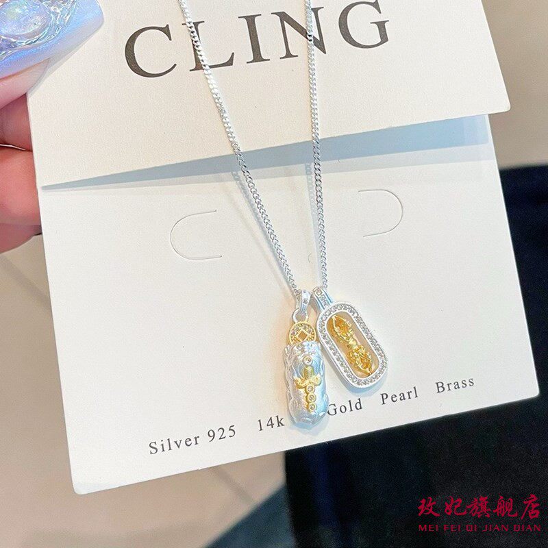 香港正生韦雪同款貔貅金刚杵黄金色s925纯银项链女时尚百搭锁骨链