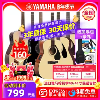 雅马哈音效民谣吉他初学者全单单板41寸男女生演奏新手自学木吉他