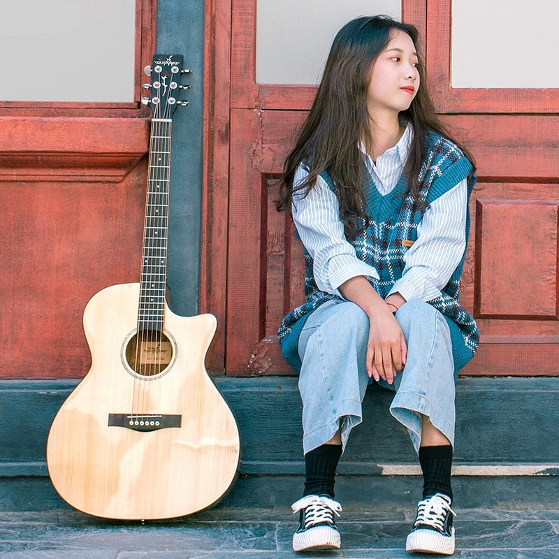 正品41寸民谣单板吉他初学者女生男生38寸学生自学白色吉它乐器