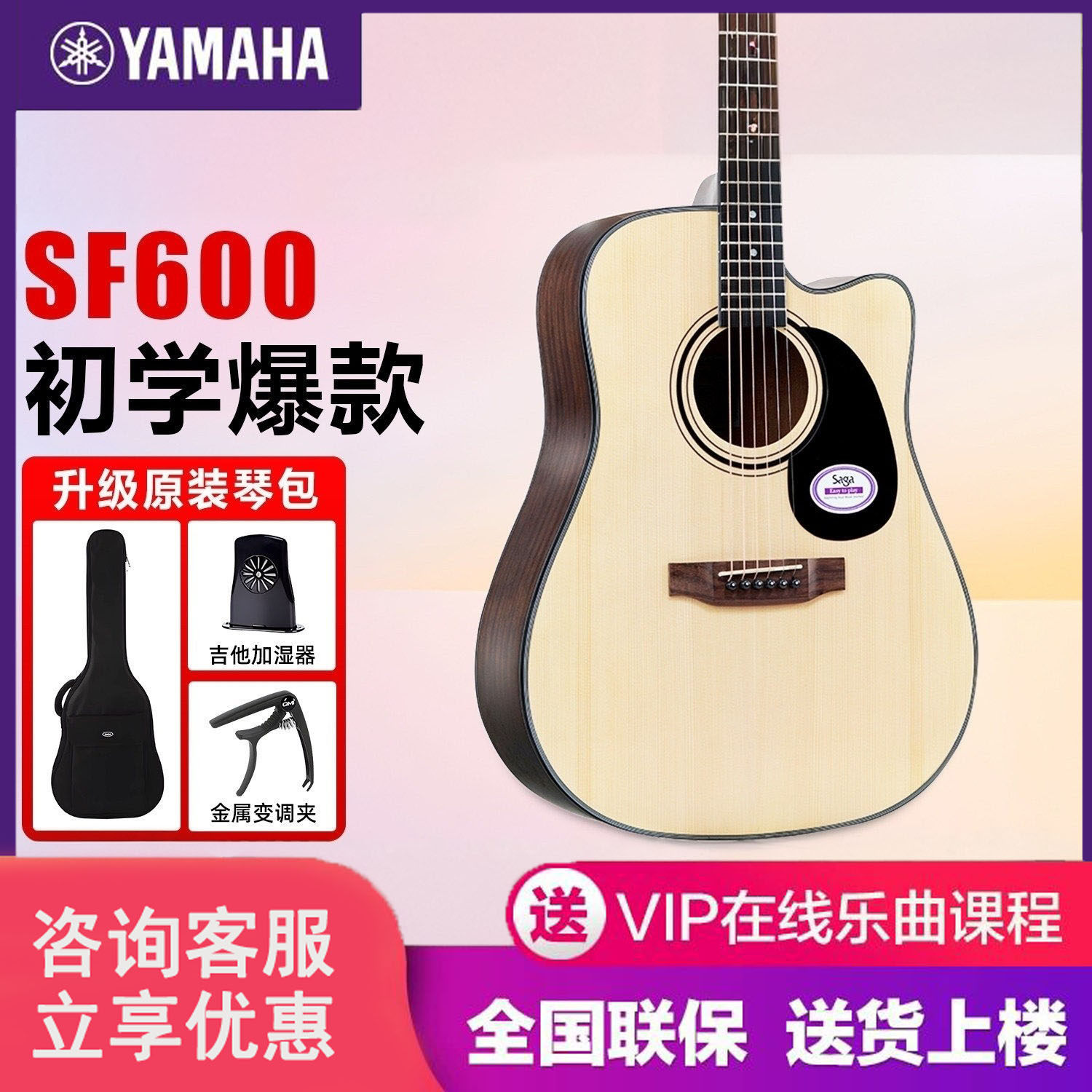 雅马哈吉他初学者女生F400入门电箱木吉他男F600民谣吉它41寸f310