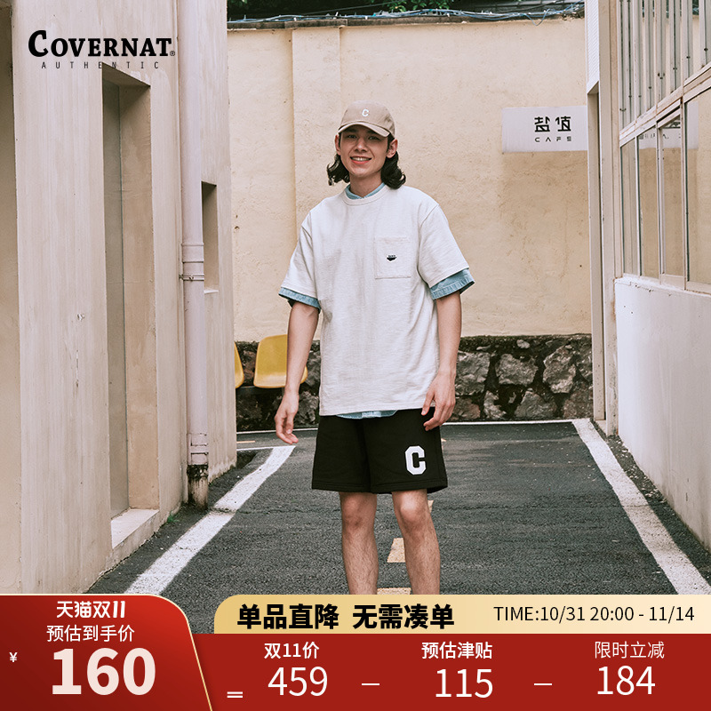 covernat韩国潮牌情侣款中性款竹节棉标志口袋T恤短袖男女百搭
