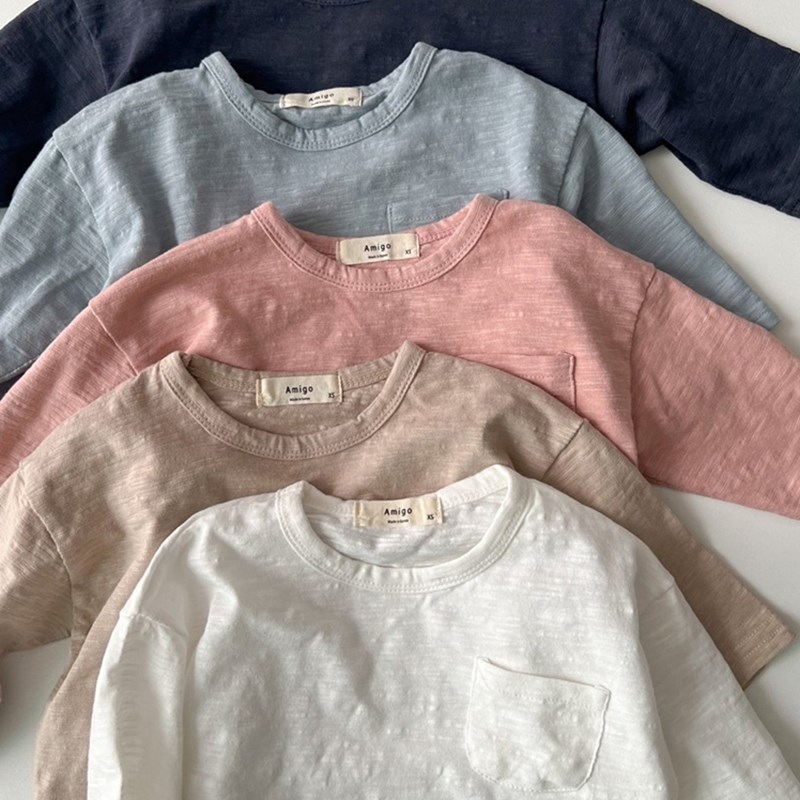 版型干净利落超好穿!韩国男女童宝宝口袋设计竹节棉长袖T恤衫23秋