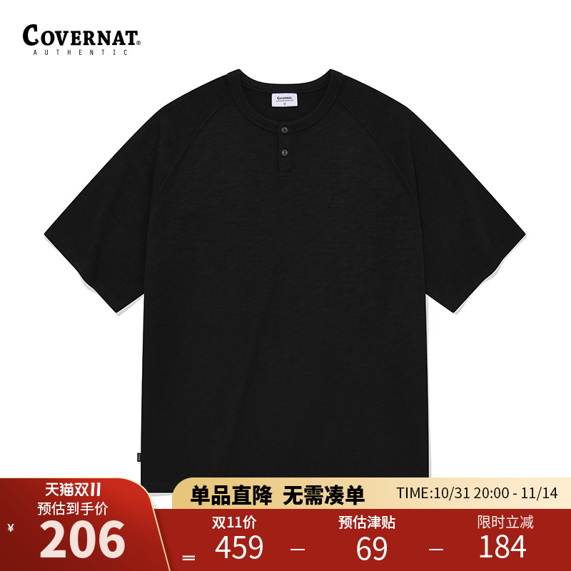 covernat韩国潮牌纯棉宽松t恤竹节棉圆领短袖简约夏季男女同款
