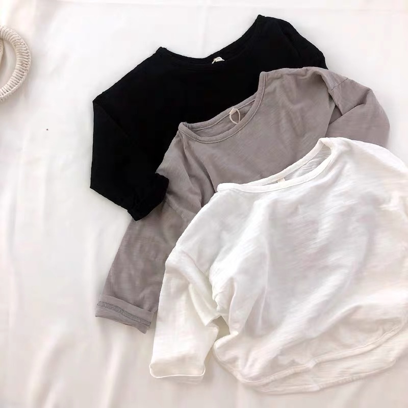 特惠 韩国童装 男女儿童宝宝宽松纯色竹节棉套头打底衫 百搭T恤
