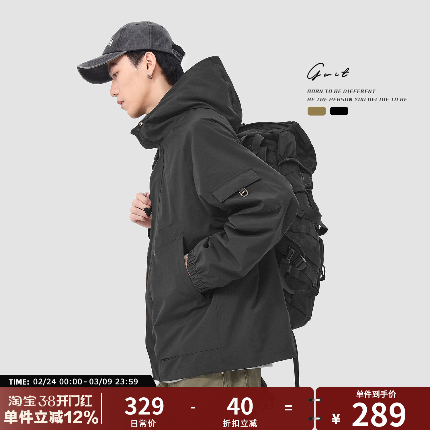 GWIT 美式硬壳三防户外登山冲锋衣春秋上衣潮牌夹克连帽外套男
