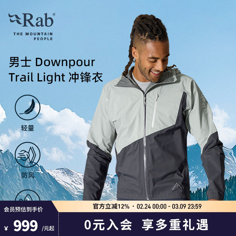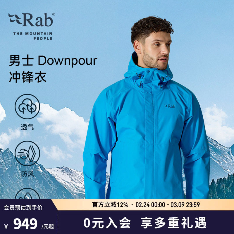 RAB睿坡Downpour男士户外运动徒步夹克轻量透气登山冲锋衣 QWI-06