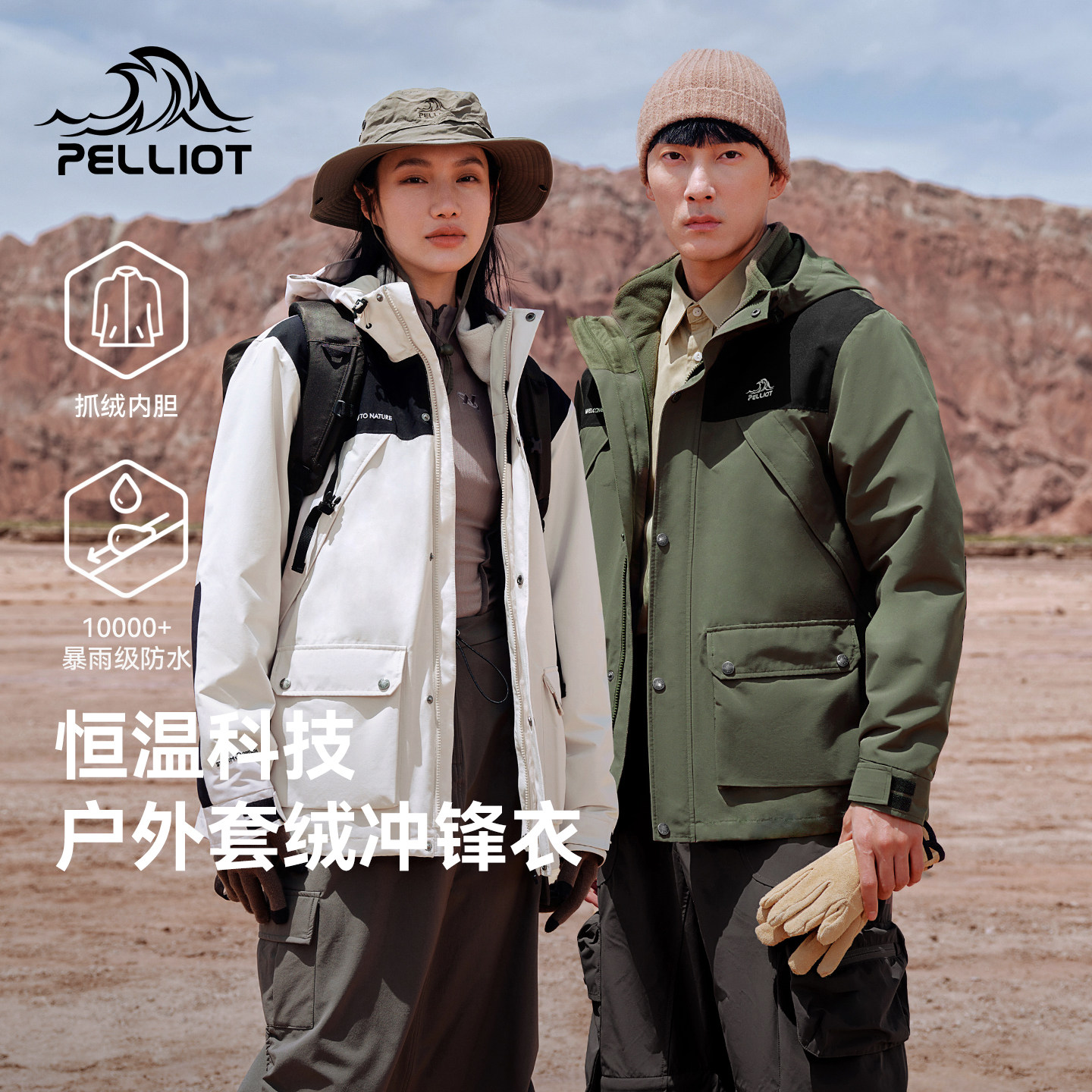 骆驼工装ICON撞色冬季男女外套三合一加绒加厚外套户外登山冲锋衣
