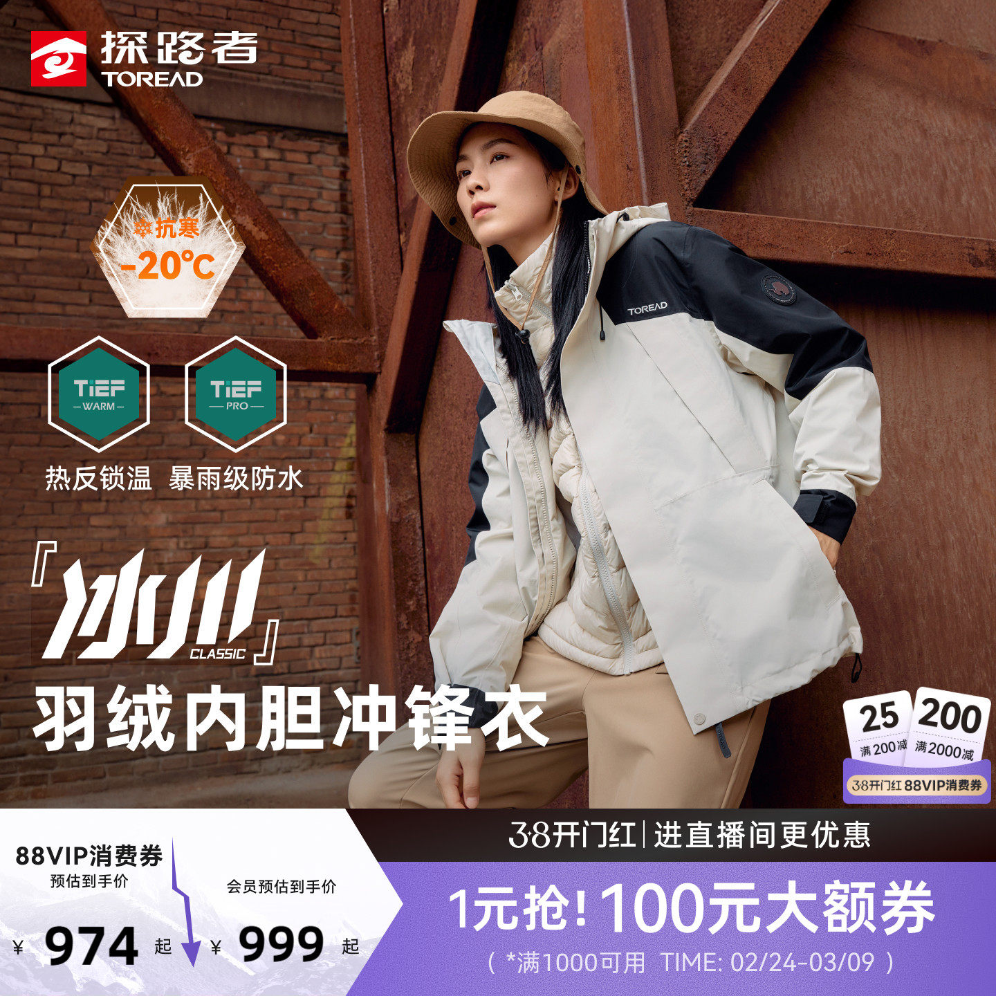 【冰川 hyper】探路者硬壳冲锋衣男户外登山三合一羽绒服内胆保暖