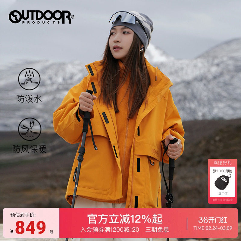 outdoor products冬户外三合一抓绒防风保暖徒步登山冲锋衣外套女