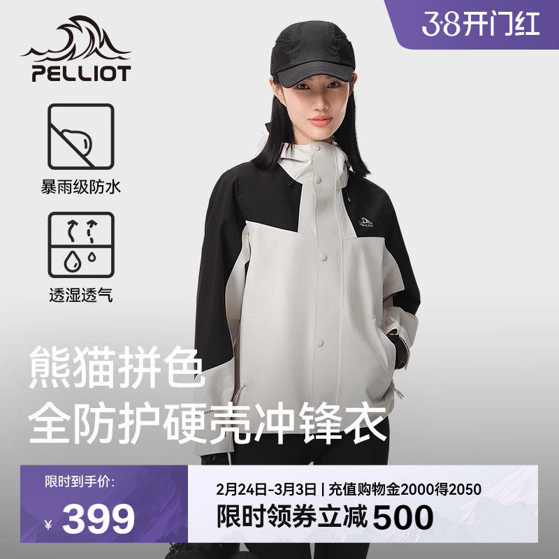 【硬壳】伯希和登山冲锋衣女新款单层黑色运动外套男防风雨登山服