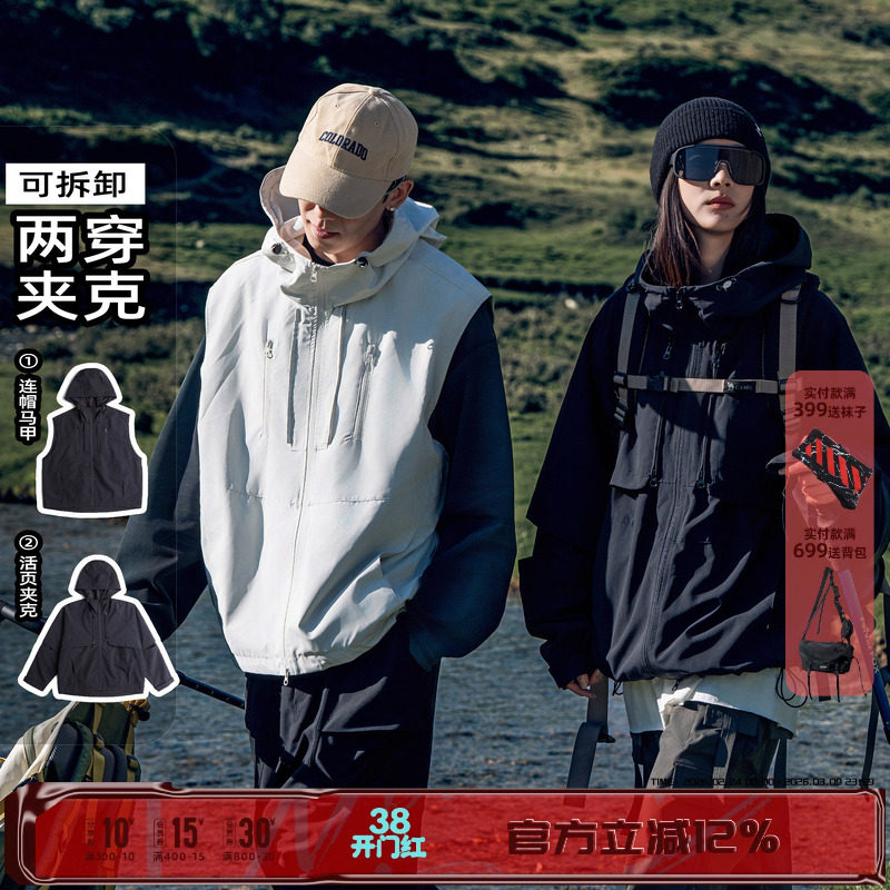 AOGZ户外登山冲锋衣夹克男女秋春新款防水可拆卸两穿工装马甲外套