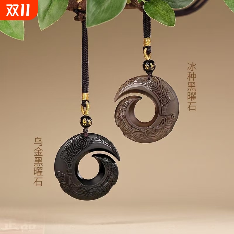 黑曜石平安扣吊坠山鬼花钱玉石挂件山鬼钱项链2026年本命年护身符