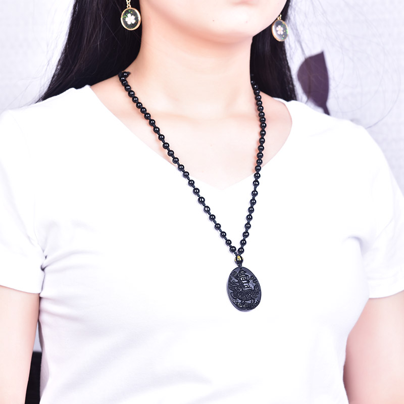 貔貅吊坠黑曜石平安扣男士项链男情侣女招财转运水晶挂坠生日饰品