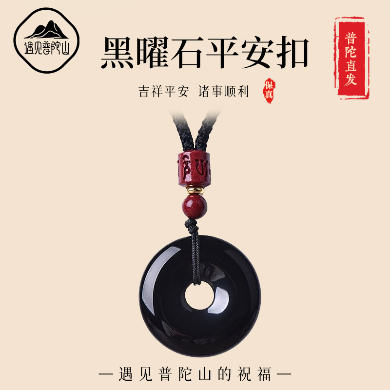 遇见普陀山天然黑曜石平安扣吊坠男女士钥匙扣款挂件项链送人礼物