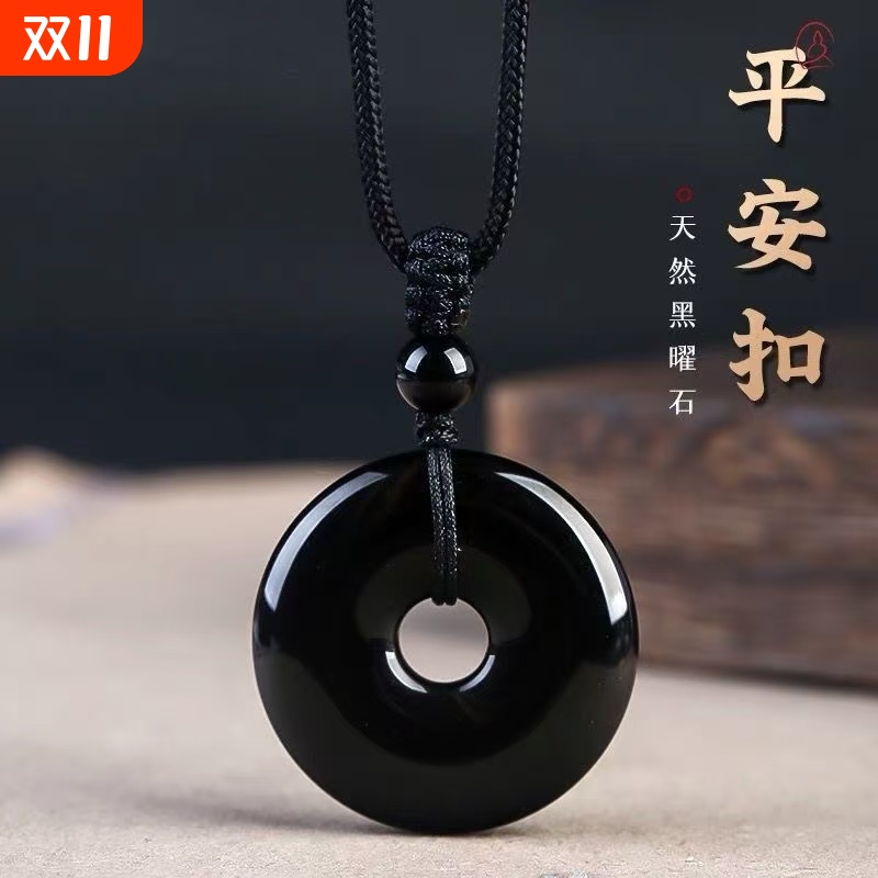 天然黑曜石平安扣吊坠男女士本命年无事牌礼物招财转运保平安项链