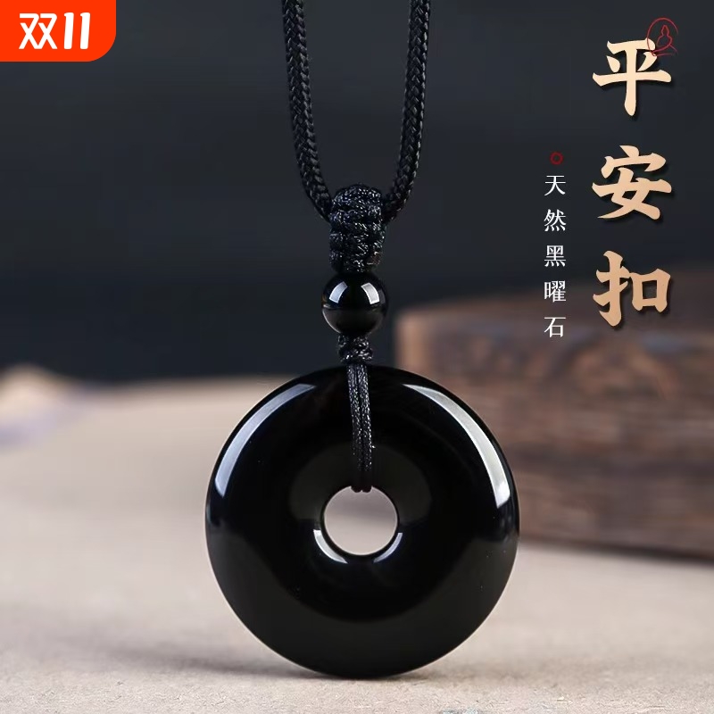 天然黑曜石吊坠时来运转平安扣吊坠护身符男士吊坠玉石项链平安符