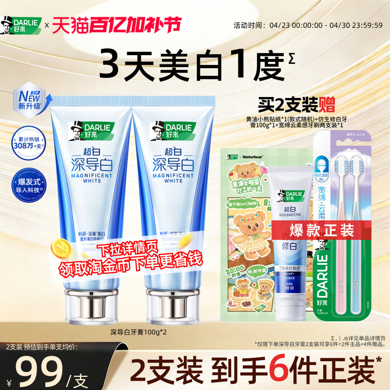 DARLIE好来原黑人深导白美白牙膏牙齿去黄去牙渍含氟成人官方正品