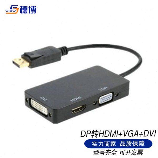 穗博DP三合一转接清线mini dp转hdmi VGA DVI 3in1转换器转接线