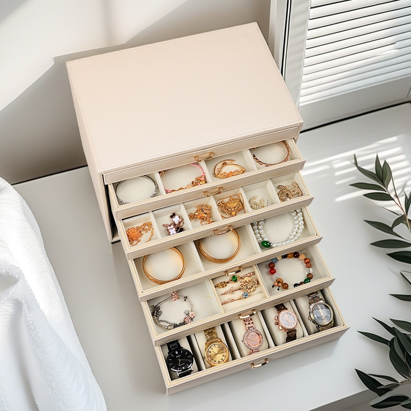 首饰盒桌面麂皮绒抽屉公主欧式韩国多功能戒指项链整理饰品收纳盒