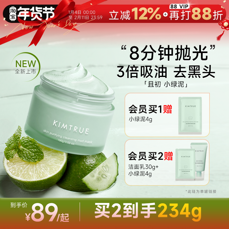 程十安KIMTRUE且初小绿泥清洁泥膜深层去黑白头控油舒缓涂抹面膜