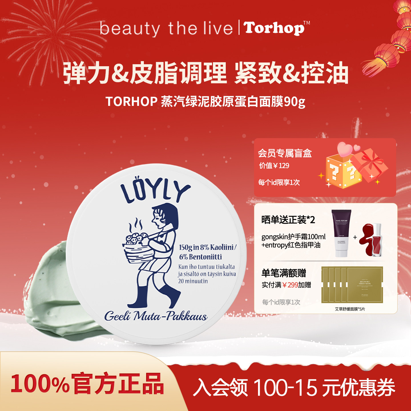 韩国TORHOP蒸汽绿泥胶原蛋白面膜深层清洁泥膜控油紧致保湿提亮