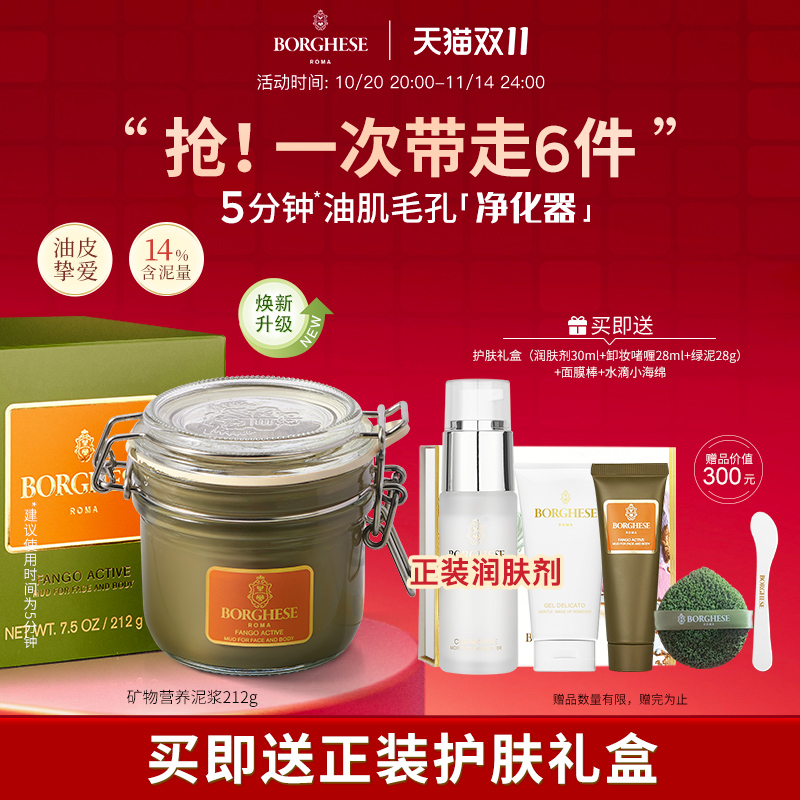 【星品体验礼】Borghese贝佳斯矿物营养泥浆绿泥清洁泥膜面膜礼盒