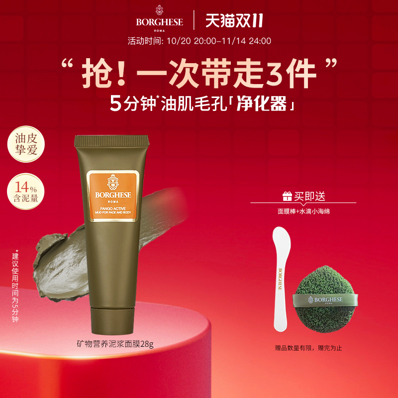 【天猫U先】Borghese/贝佳斯矿物营养泥浆绿泥深层清洁面膜28g