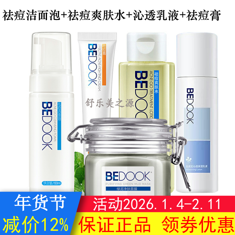 BEDOOK比度克祛痘套装5件绿泥面膜+洁面泡+爽肤水+精华乳+祛痘膏