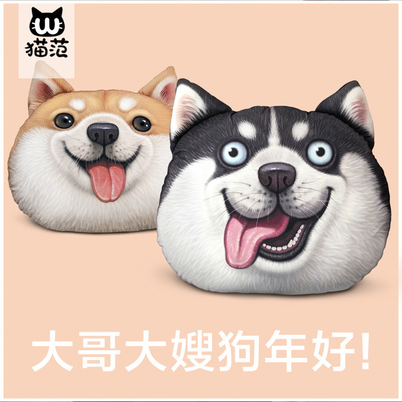 3D二哈抱枕doge神烦狗头靠垫哈士奇暖手座椅腰靠床头靠枕沙发靠背