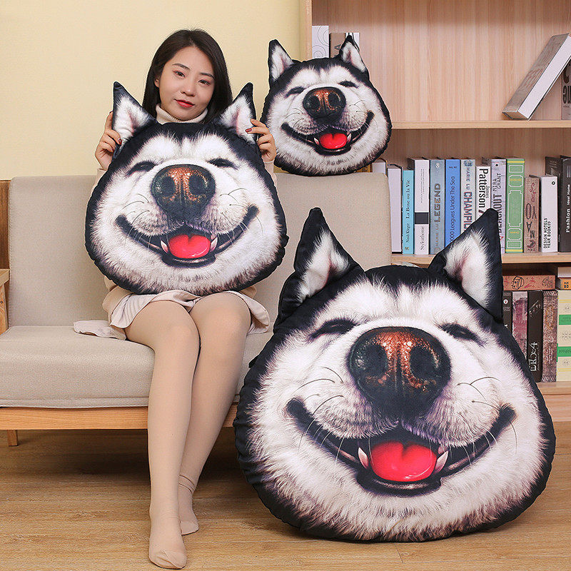 二哈3d狗头哈士奇抱枕可爱靠枕床头靠垫汽车沙发卧室男生搞怪网红