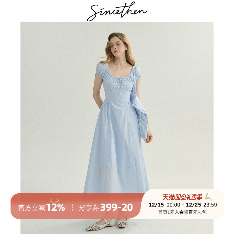 sincethen 海岛日记法式蓝色连衣裙度假风穿搭长裙海边裙子女秋冬