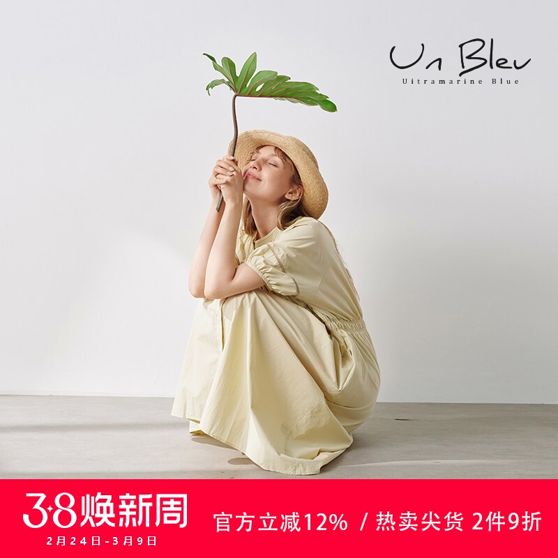 UnBleu气质连衣裙女2025新款宽松高级夏季女装泡泡袖纯棉海边裙子