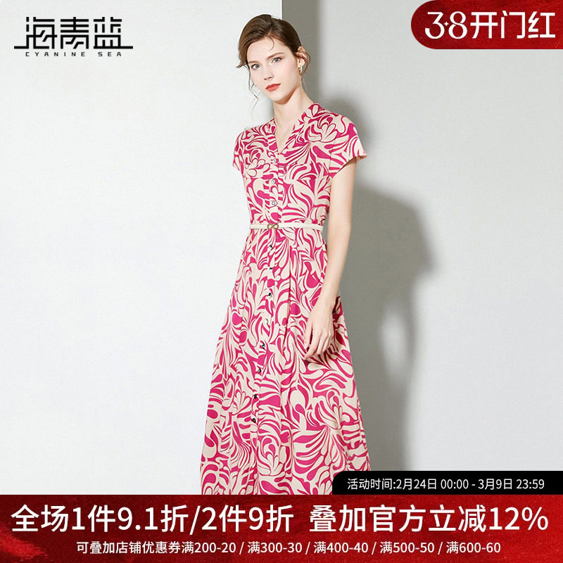 海青蓝 短袖连衣裙2025年新款夏季高级时尚气质女装度假海边裙子