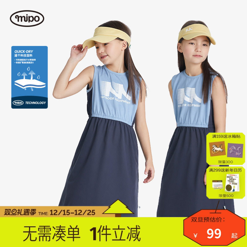 mipo秋季速干吸湿印花连衣裙女童四面弹弹力轻盈户外海边裙子