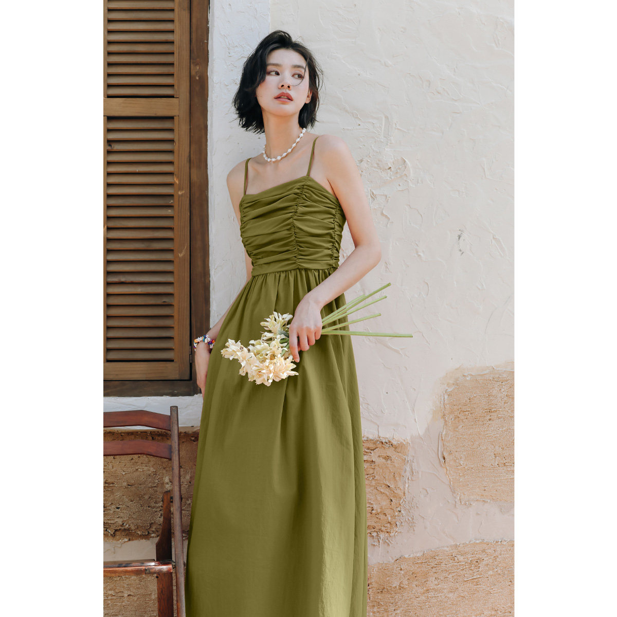 弥古绿色吊带连衣裙高级感小个子短裙女夏法式度假沙滩裙海边裙子