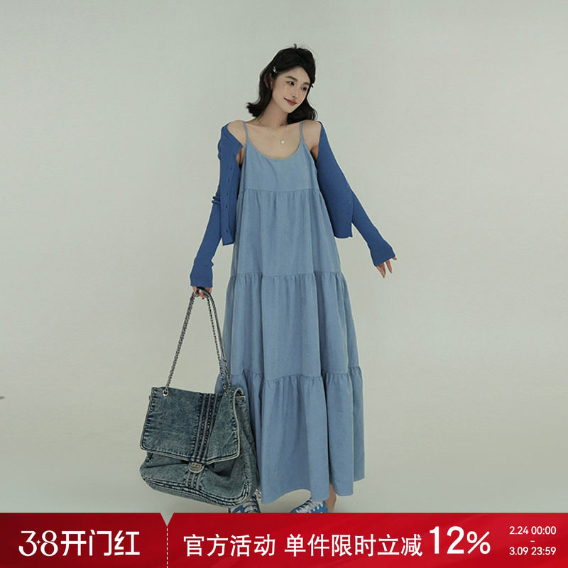 弥古蓝色连衣裙女夏高级感法式背心裙吊带度假长裙海边裙子沙滩裙