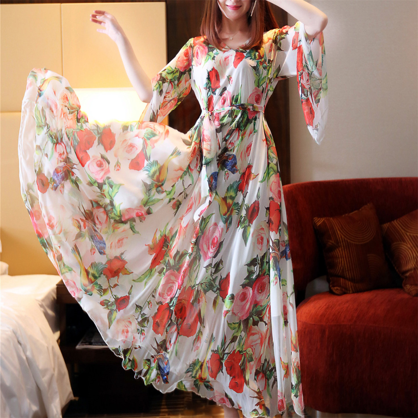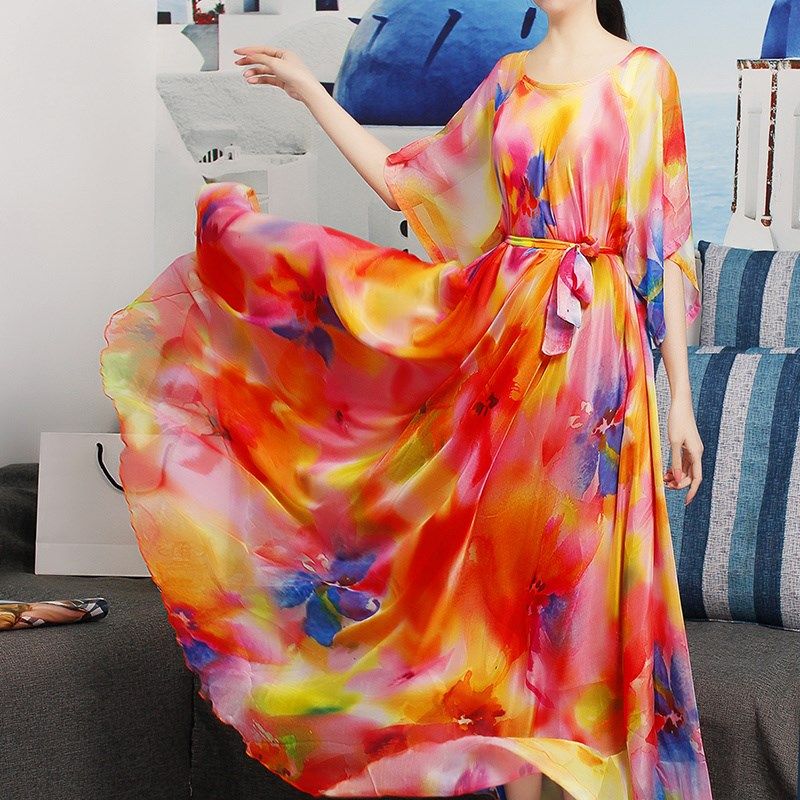 夏季雪纺连衣裙女碎花大码宽松显瘦大摆长裙去海边裙子度假沙滩裙