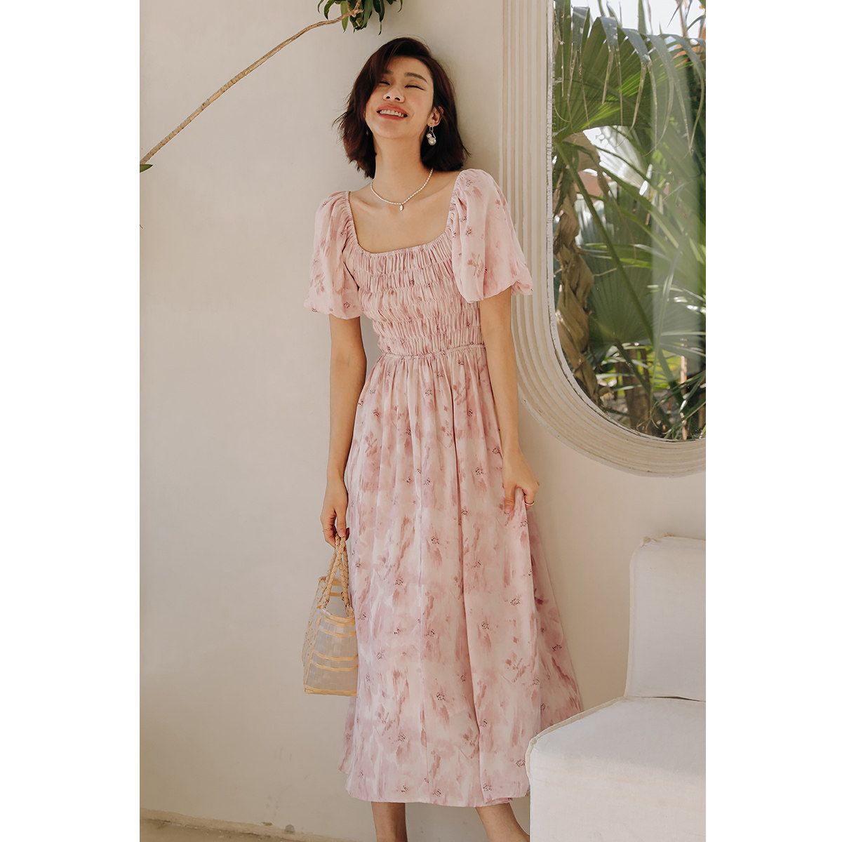 弥古粉色碎花连衣裙茶歇法式度假长裙女夏季高级感沙滩裙海边裙子
