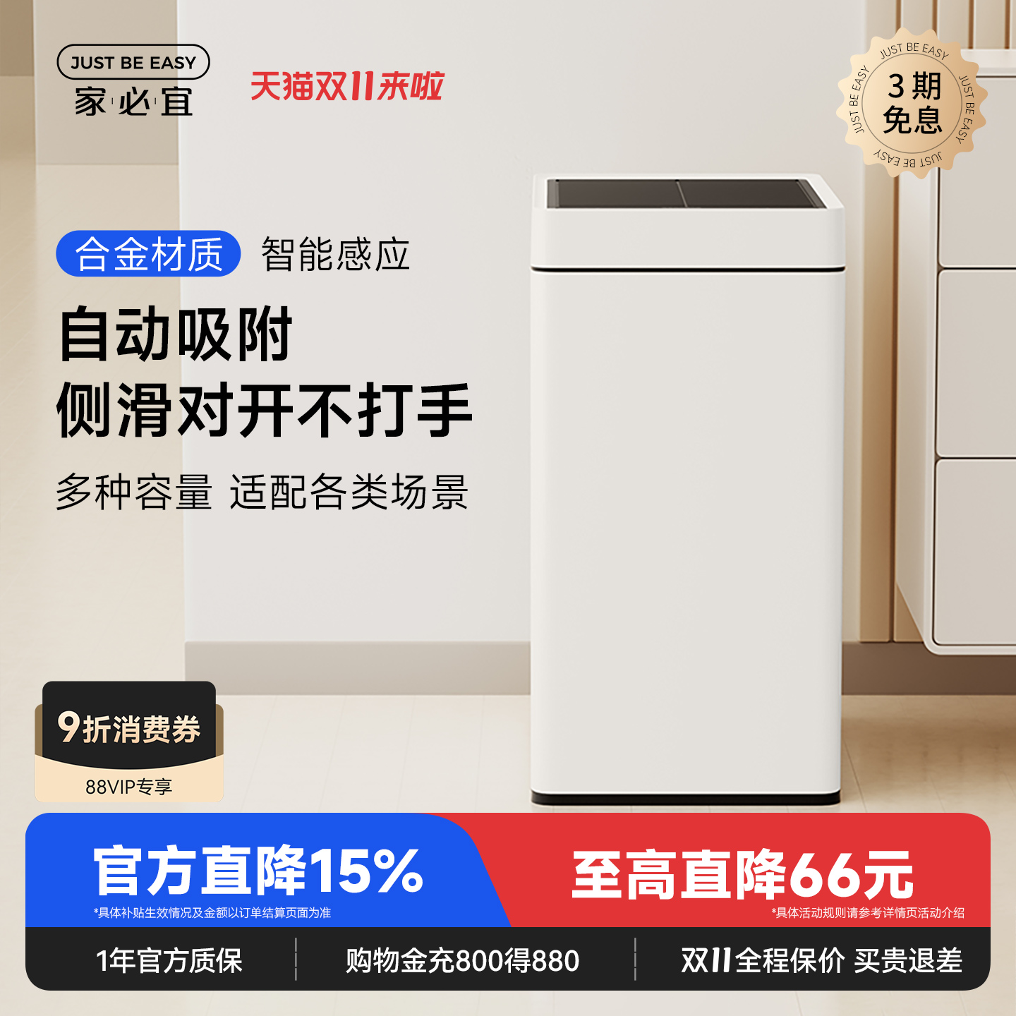 家必宜智能垃圾桶自动吸附感应式全自动家用大容量客厅厨房卫生间