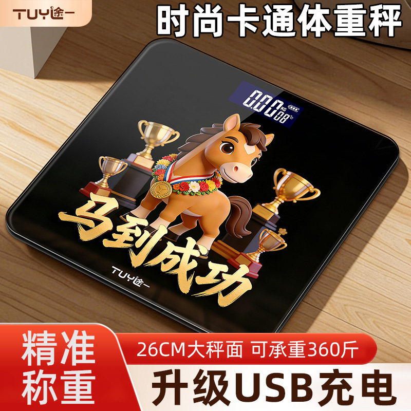 途一电子体重秤家用精准充电的人体秤称重计大秤面马年设计电子秤