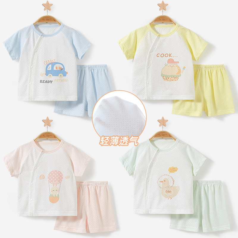 婴儿套装夏季男童女童薄款开裆幼儿短袖分体外出儿童衣服宝宝夏装