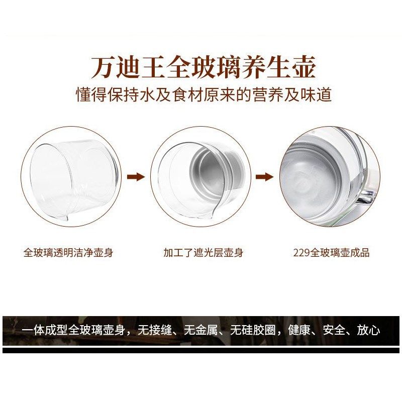 万迪王全玻璃内胆养生壶玻璃底 全自动煮茶壶燕窝壶煎药壶烧水壶