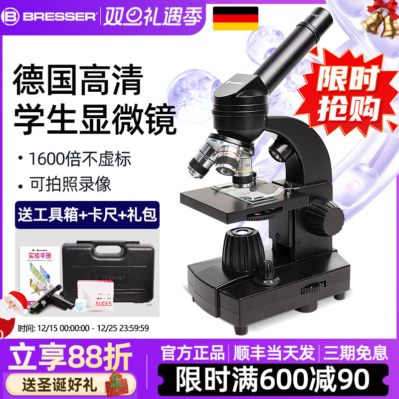 德国bresser显微镜中学生光学高清专用专业级生物电子初中高倍套装可看细菌精子生日圣诞节礼物中小学生专用
