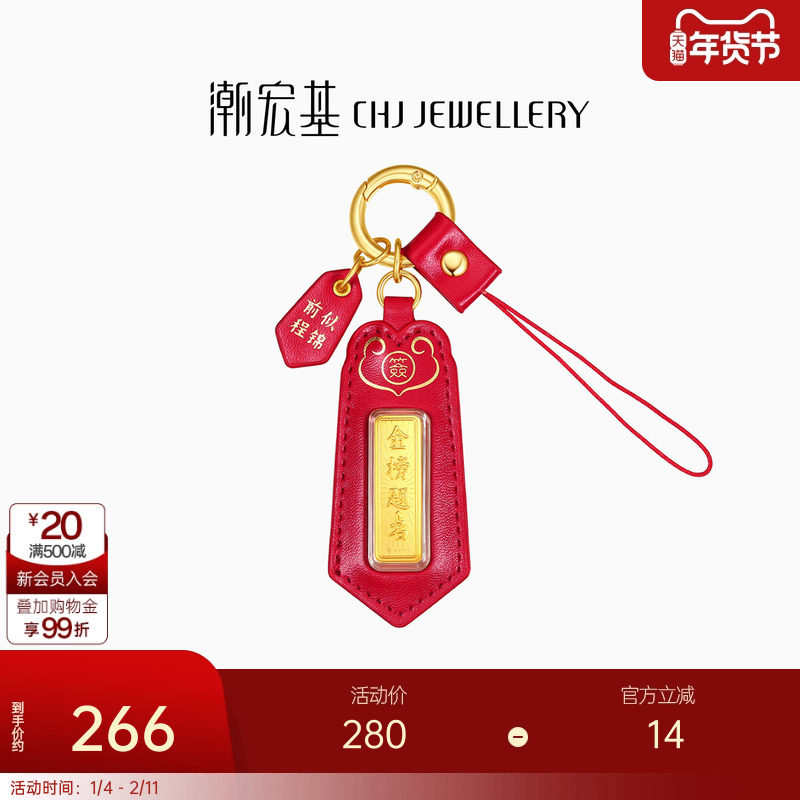 潮宏基考神金榜题名上上签黄金金条足金挂件金钞投资金钥匙扣摆件