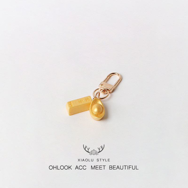 简约创意设计黄金金条钥匙扣发财红中挂饰挂件背包包汽车书包男女