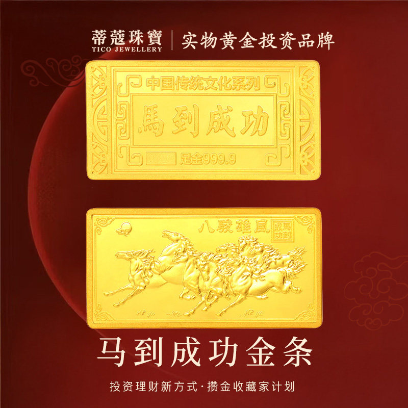 蒂蔻珠宝黄金金条足金999.9马到成功金条投资金条收藏理财生日礼