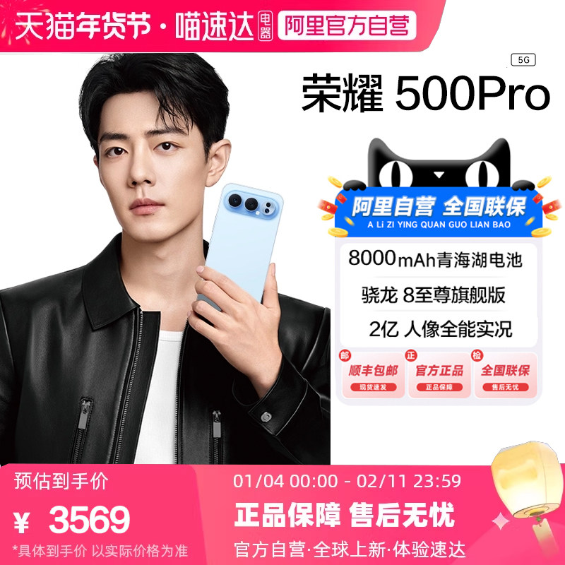 【国补| 阿里自营】HONOR/荣耀500pro新品手机2亿人像全能实况8000mAh青海湖电池骁龙8至尊旗舰芯肖战代言200