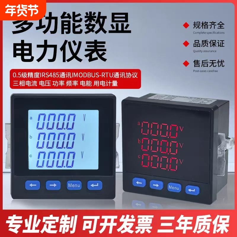 三相液晶多功能电力仪表数显电流电压功率可计量485通讯一门电气