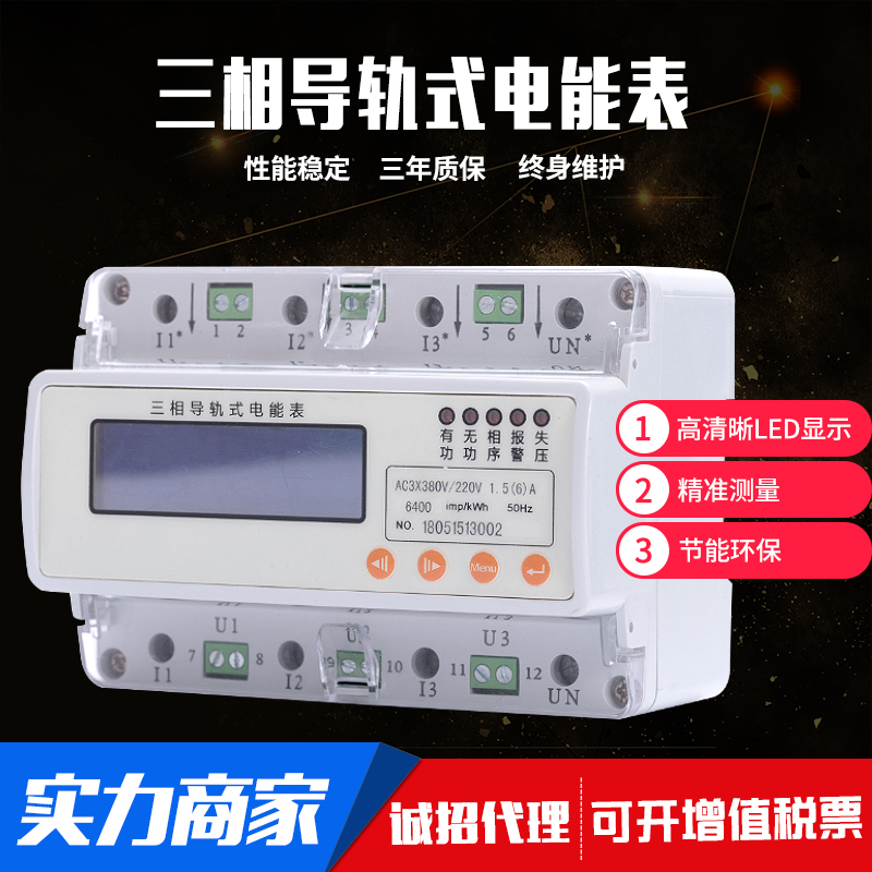 三相四线导轨式多功能电力仪表带485通讯远程电能电度表液晶显示