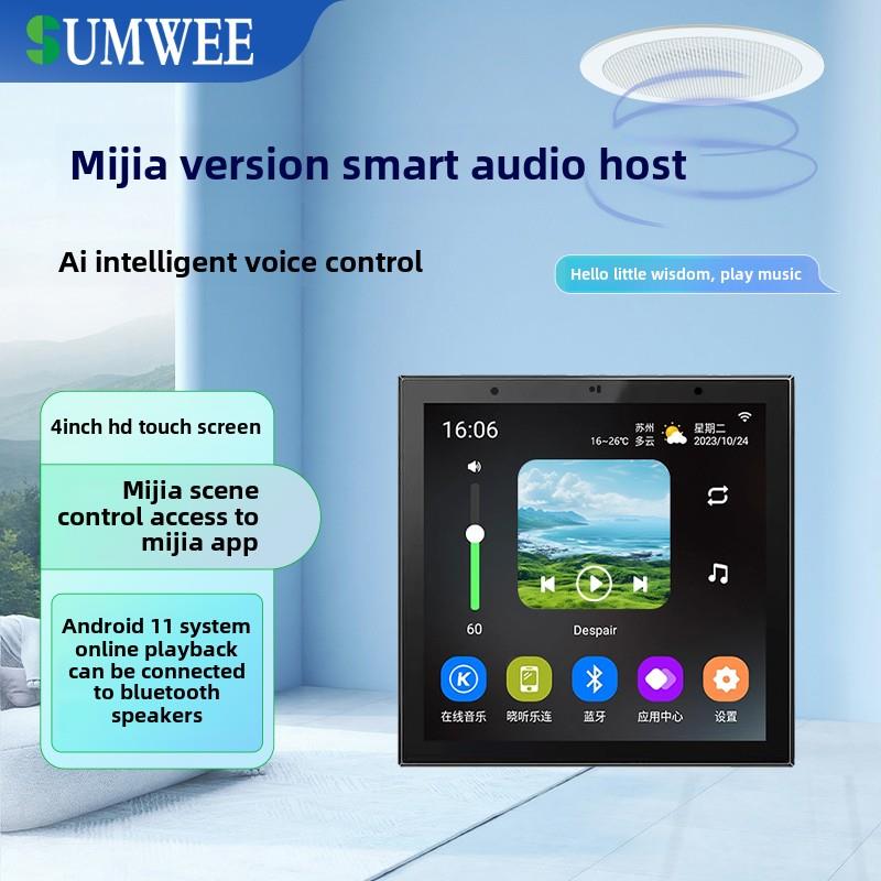86智能家居4寸触摸屏蓝牙背景音乐系统家庭酒店背景音乐主机功放